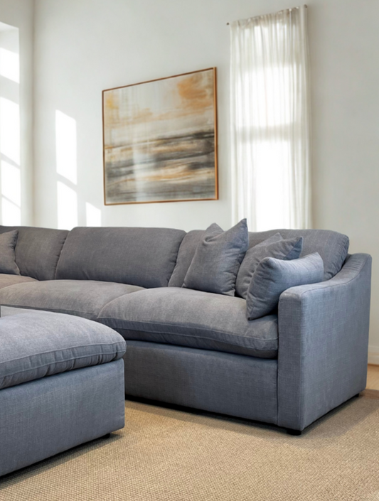Deluxe Gray Performance Slope Arm Cloud Couch - 4pc Set