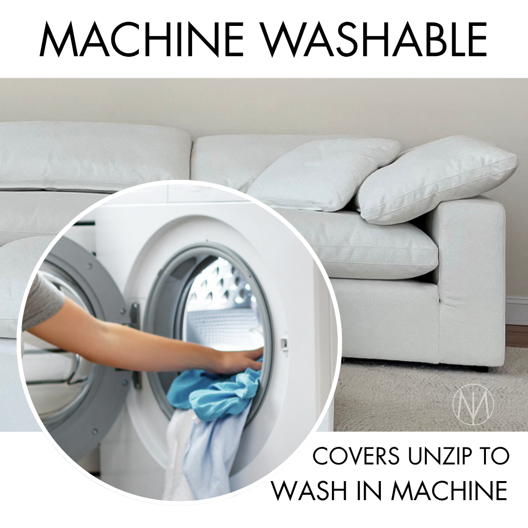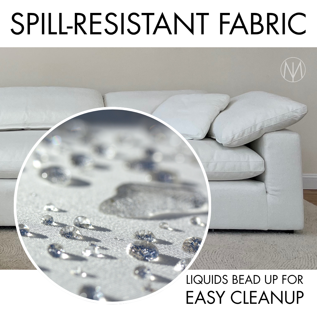 Featuring a plush cloud-like design, reconfigurable modular sectional pieces, seat cushions are overstuffed filled with premium down feathers blend and wrapped in durable high-performance off-white boucle fabric, this couch is perfect for relaxing and entertaining.