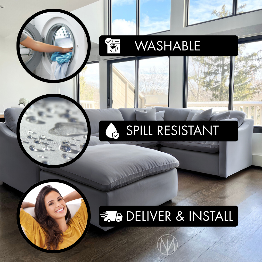 Indulge in the ultimate luxury with our Deluxe Performance Slope Arm Cloud Couch 6pc Set