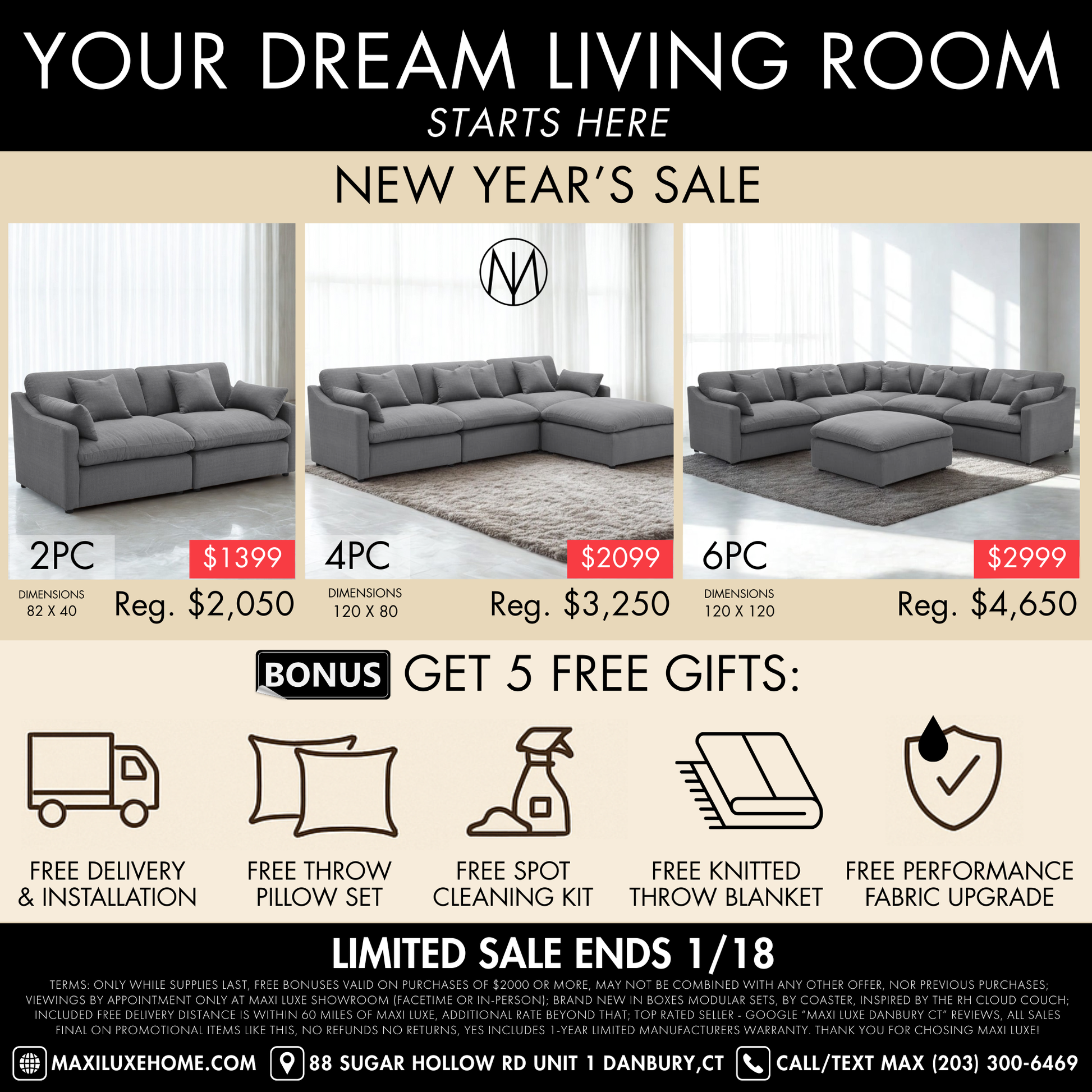 NOTE: Valid only while supplies last; may not be combined with any other offer, nor previous orders. Brand new in 6 factory sealed boxes. All sales final on promotional items such as this; no returns nor refunds; yes includes 1-year limited manufacturer's warranty. Local delivery area is within 60 miles of Maxi Luxe Showroom 06810 serving CT/NY/NJ. Thank you for choosing Maxi Luxe - Order yours now!