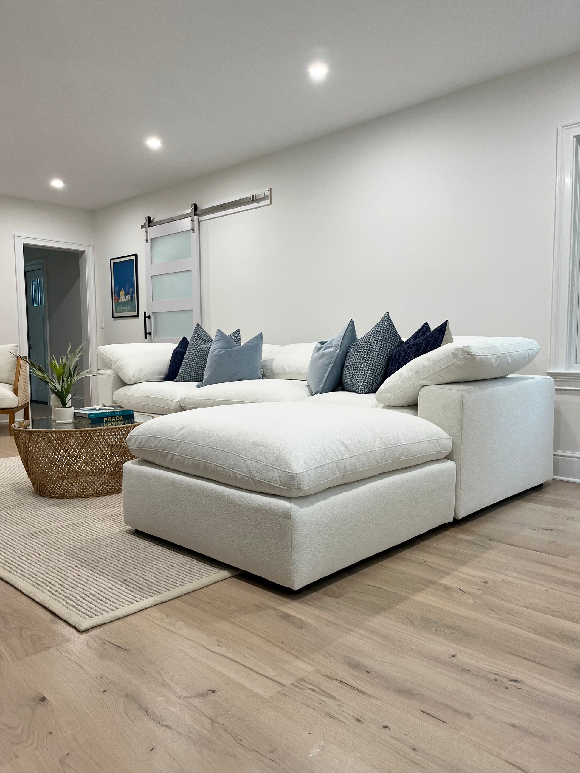 Indulge in the ultimate luxury with our Boucle Luxe Depth Square Arm Cloud Couch 4pc Set